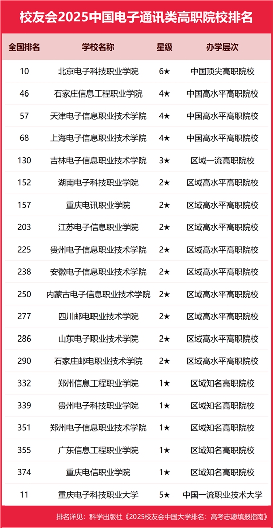 北京電子科技職業(yè)學(xué)院勇奪2025中國電子通訊類高職院校排名第一,天津電子信息職業(yè)技術(shù)學(xué)院前三