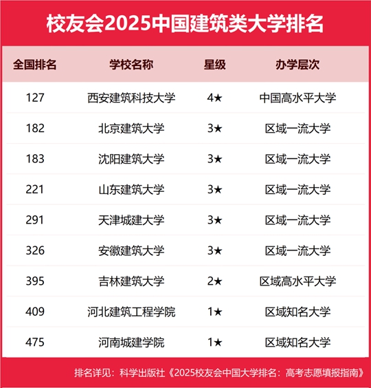校友會2025中國建筑類大學排名,西安建筑科技大學、吉林建筑科技學院第一 |