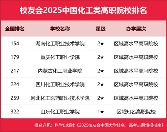 湖南化工職業技術學院勇奪2025中國化工類高職院校排名第一,內蒙古化工職業學院前三