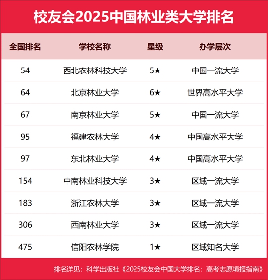校友會(huì)2025中國(guó)林業(yè)類大學(xué)排名,西北農(nóng)林科技大學(xué)、福建林業(yè)職業(yè)技術(shù)學(xué)院、云南林業(yè)職業(yè)技術(shù)學(xué)院第一 |