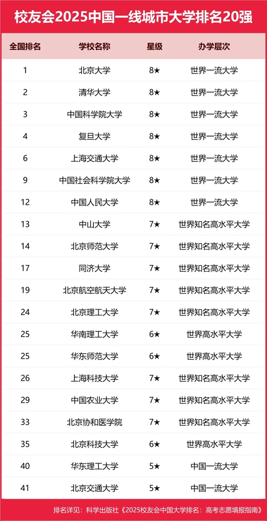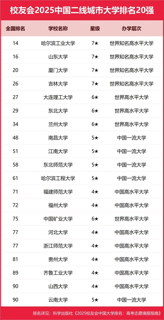 校友會2025中國各線城市大學排名,北京大學、浙江大學、哈爾濱工業大學第一 |