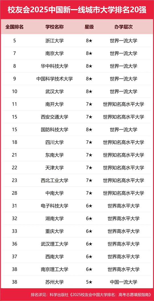 哪些高校是2025年中國一線、新一線、二線、三線、四線和五線城市辦學實力最強的大學?