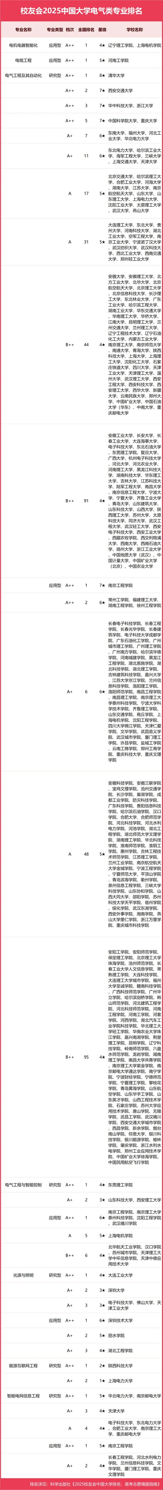 校友會2025中國大學電氣類專業排名,清華大學、南京工程學院第一 |