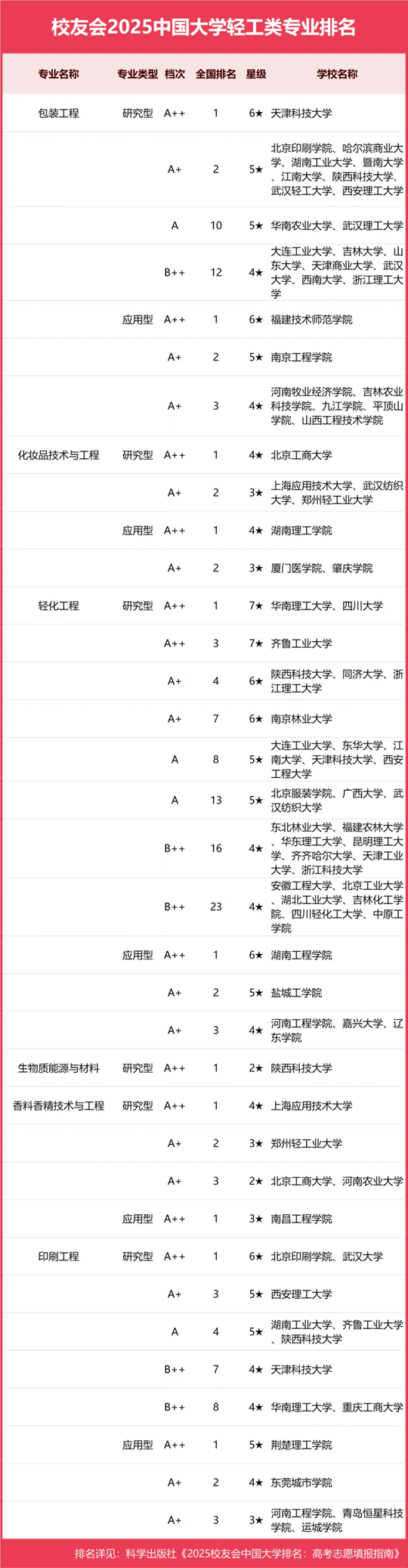 在2025中國大學輕化工程專業排名(研究型)中,四川大學、華南理工大學榮膺2025中國七星級專業(7★),入選世界知名高水平專業、中國頂尖專業行列,位列第一。