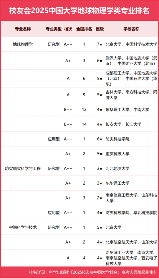 校友會(huì)2025中國大學(xué)地球物理學(xué)類專業(yè)排名(研究型)