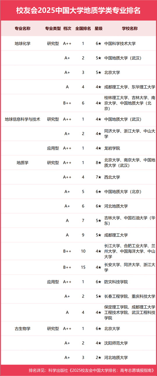 校友會(huì)2025中國大學(xué)地質(zhì)學(xué)類專業(yè)排名,中國科學(xué)技術(shù)大學(xué)、龍巖學(xué)院第一 |