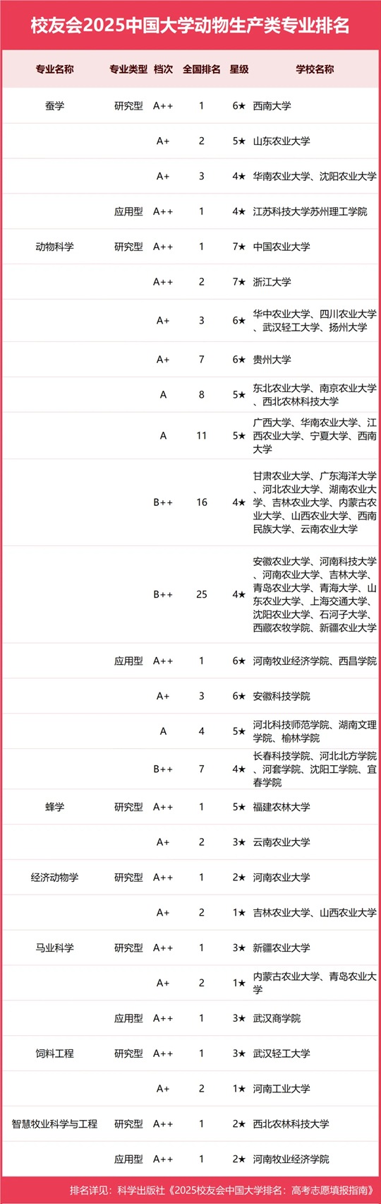 校友會2025中國大學(xué)動物生產(chǎn)類專業(yè)排名(研究型)