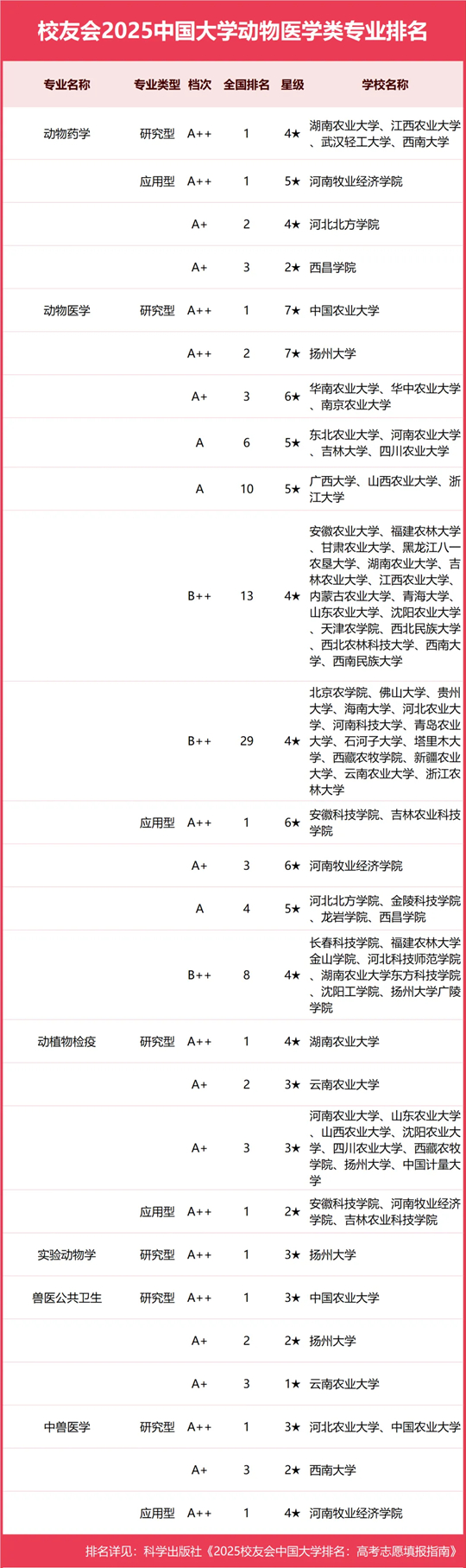 校友會2025中國大學動物醫學類專業排名,中國農業大學、河南牧業經濟學院第一 |