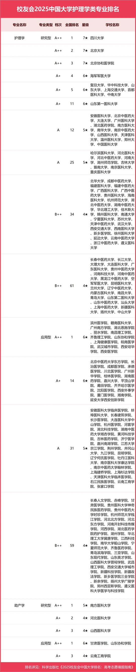 校友會2025中國大學(xué)護(hù)理學(xué)類專業(yè)排名(研究型)
