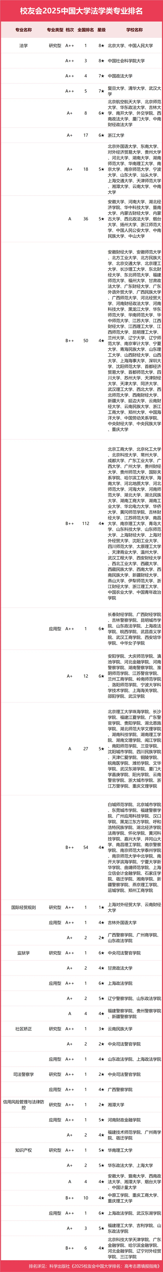 校友會2025中國大學(xué)法學(xué)類專業(yè)排名(應(yīng)用型)