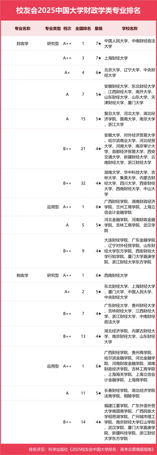 校友會2025中國大學財政學類專業(yè)排名,上海財經大學、湖南財政經濟學院第一 |