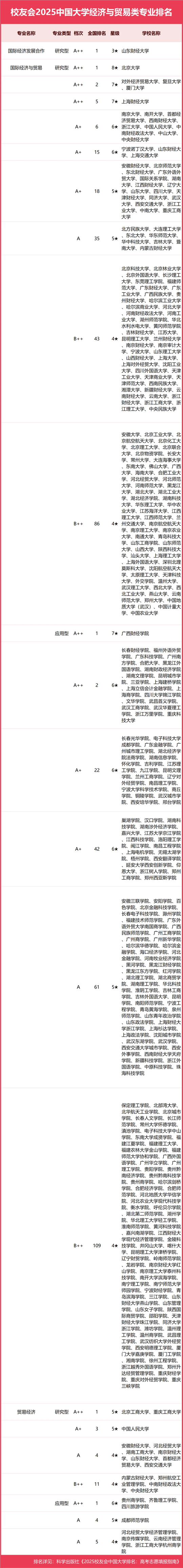 校友會2025中國大學經濟與貿易類專業排名,北京大學、 廣西財經學院第一 |