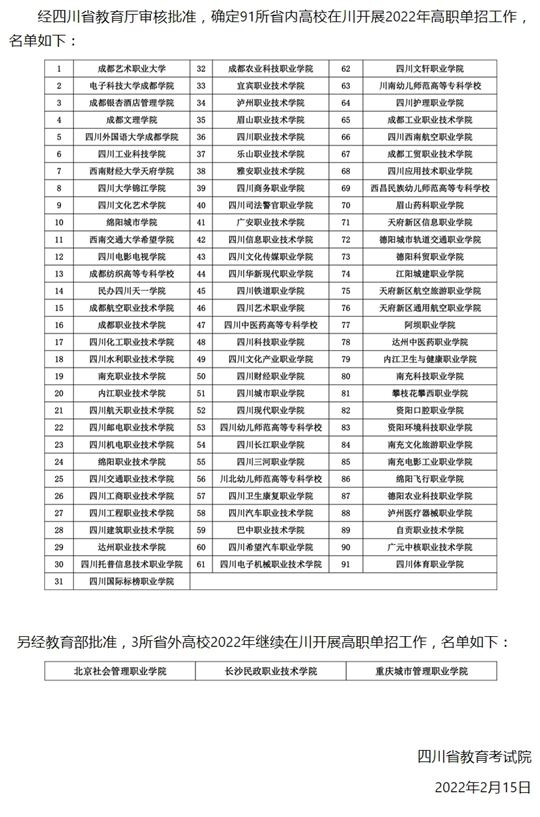 2022年在川開展高職單招院校名單