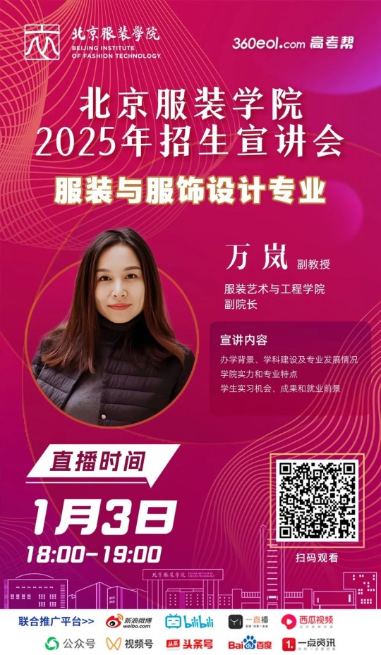 直播預(yù)告|北京服裝學(xué)院2025年服裝與服飾設(shè)計專業(yè)招生宣講會(1月3日)