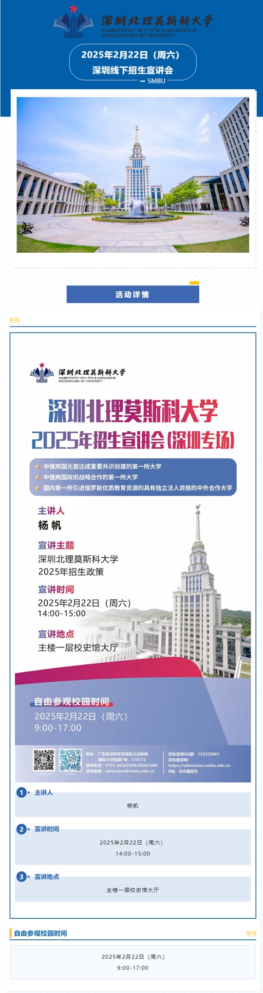 深圳專場 | 2025年深圳北理莫斯科大學線下招生宣講會(2月22日)