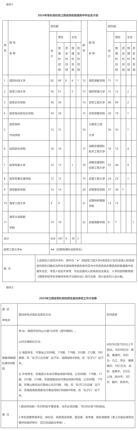 附件:1.2024年軍隊院校在江西省招收普通高中畢業生計劃