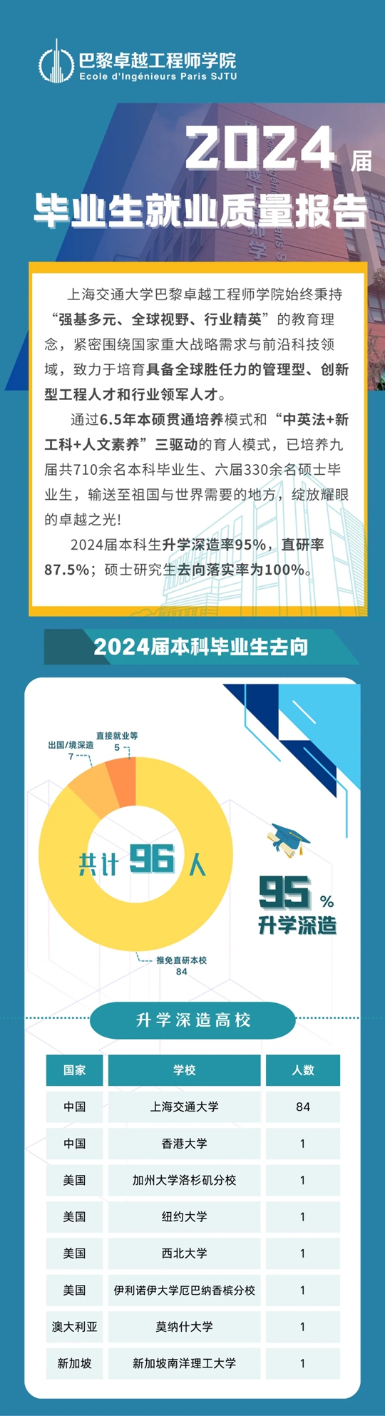 上海交通大學巴黎卓越工程師學院2024屆畢業生就業質量報告
