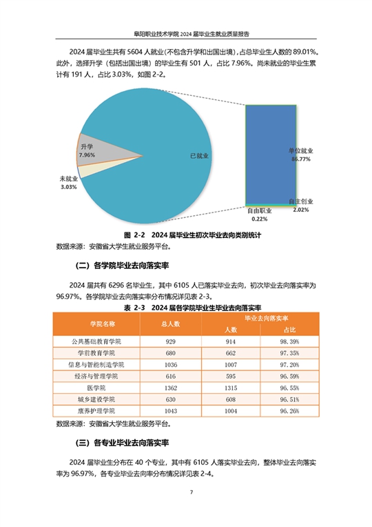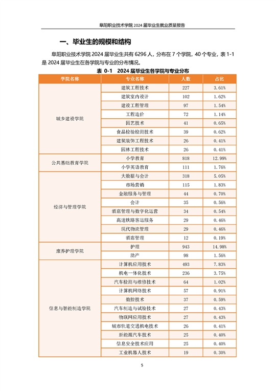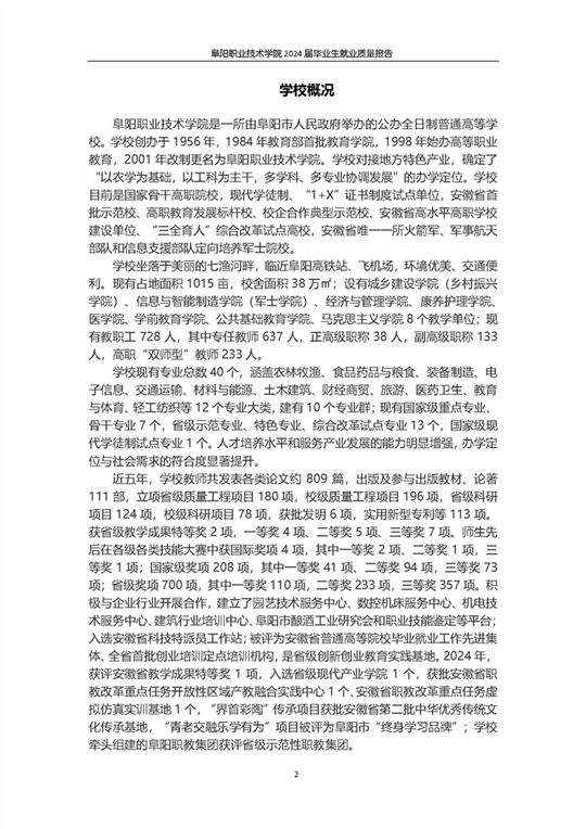 阜陽職業(yè)技術(shù)學(xué)院2024屆畢業(yè)生就業(yè)質(zhì)量年度報(bào)告