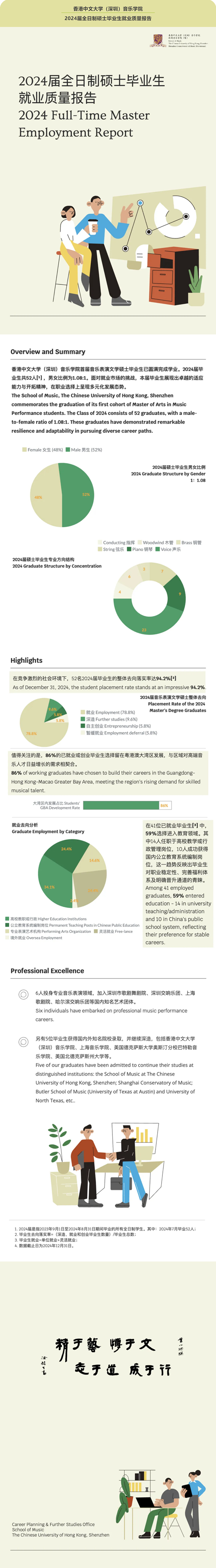 香港中文大學(深圳)音樂學院2024屆全日制碩士畢業(yè)生就業(yè)質量報告