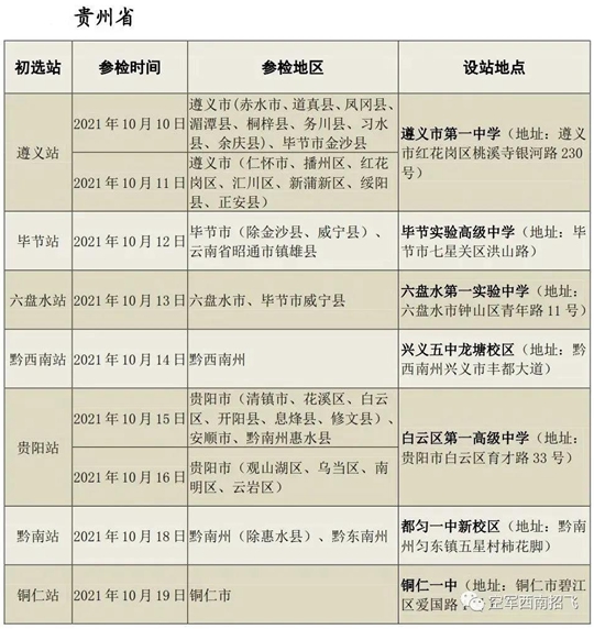 2022年度貴州省空軍招飛初選檢測安排出爐 |