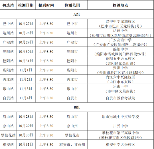 2.報名學生由學校統一組織帶隊,往返途中做好安全防護;符合報名條件、前期未報名學生可直接到檢測現場報名參檢;為減少人員聚集,請各位參檢學生不在現場逗留,如被淘汰立即離開檢測站。