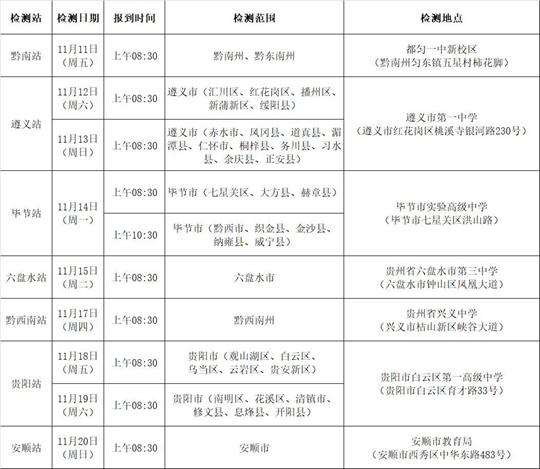 根據(jù)2023年度空軍招飛工作安排,2022年11月11日至11月20日,空軍招飛局成都選拔中心將派初選檢測(cè)組赴貴州省各地市組織初選檢測(cè),銅仁市初選檢測(cè)工作因受疫情影響另行通知,請(qǐng)及時(shí)關(guān)注學(xué);蚩哲娢髂险酗w微信公眾號(hào)通知。具體安排如下: