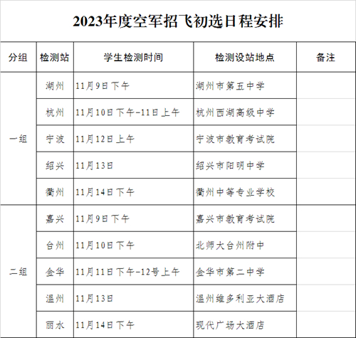 根據2023年度空軍招飛工作安排,11月9日至11月14日,空軍招飛局南京選拔中心將派初選組赴各地市,對報考空軍飛行學員的學生進行檢測。