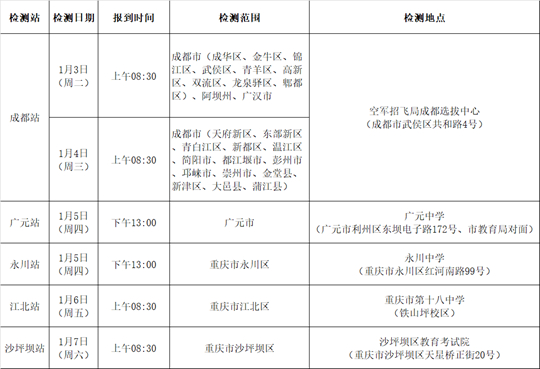 2023年度空軍招飛初選檢測安排(四川、重慶部分地區) |