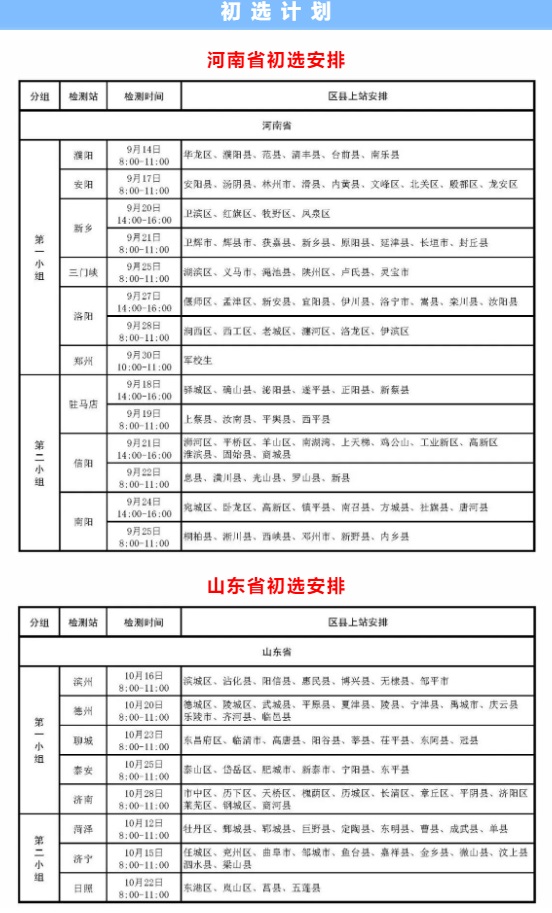 由濟南選拔中心組織宣傳發動、報名和身體基本條件篩查。(山東、河南兩省初選時間安排附后)