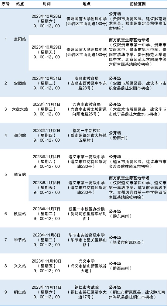 2024年度中國南方航空股份有限公司招飛貴州地區(qū)初檢安排 |