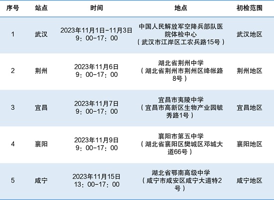 2024年度中國南方航空股份有限公司招飛湖北地區(qū)初檢安排 |