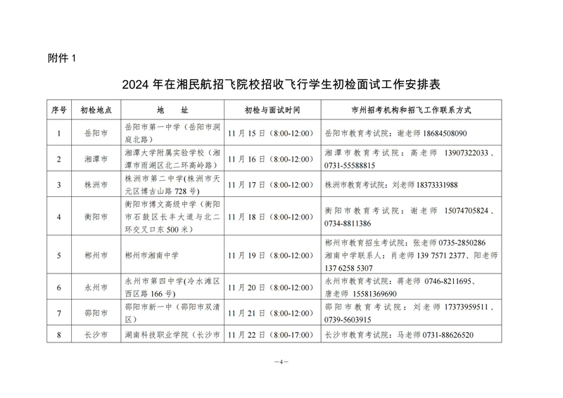 1.2024年在湘民航招飛院校招收飛行學生初檢面試工作安排表