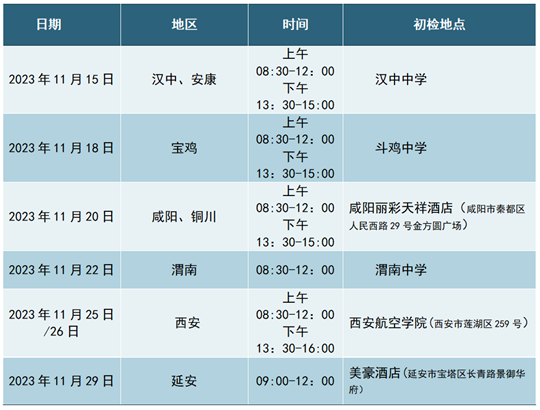 注:2024年中國民用航空飛行學院面向陜西全省招生,省內沒有設初檢地點的地市縣考生可選擇就近初檢點參加招飛初檢。(如初檢日程有調整,學校將在招生處微信公眾號進行公告)。