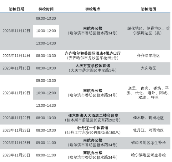 2024年度中國南方航空股份有限公司招飛黑龍江地區(qū)初檢安排 |