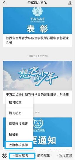 ★《空軍招收飛行學(xué)員政治考核線索表》和《空軍招收飛行學(xué)員政治考核手冊(cè)》紙質(zhì)版、電子版(須完整填寫,電子版資料可用U盤保存攜帶),以及《手冊(cè)(填寫說明)》——“參加復(fù)選需攜帶資料清單”中明確的全部資料;(《線索表》和《手冊(cè)》可于“空軍西北招飛”公眾號(hào)下載打。