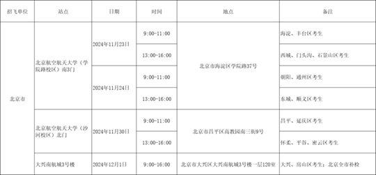 中國南方航空股份有限公司聯合北京航空航天大學在北京開展校企合作招飛,現面向參加2025年全國統一高考的北京高中畢業生招收飛行學員。初檢安排如下:
