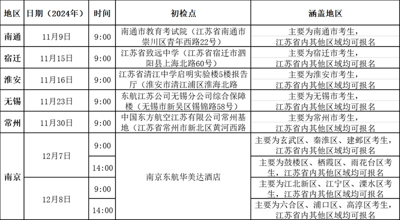 中國東方航空2025年度校企合作招飛預選初檢日程表(江蘇省) |