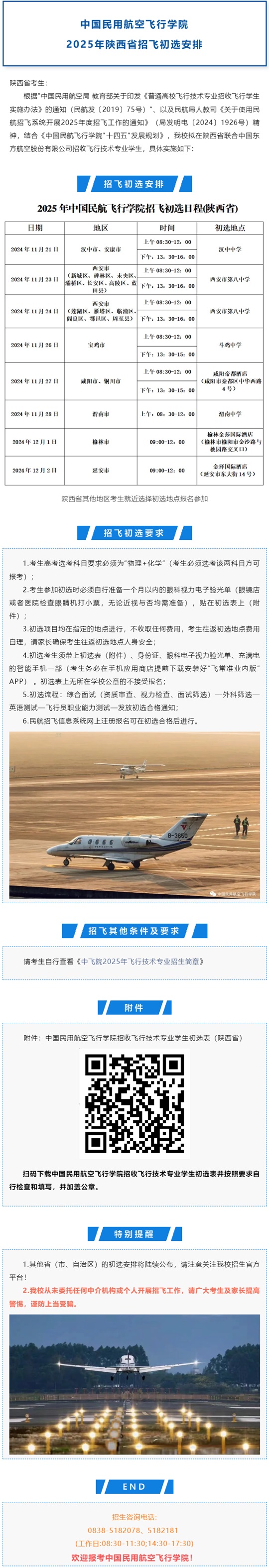 中國民用航空飛行學院2025年陜西省招飛初選安排