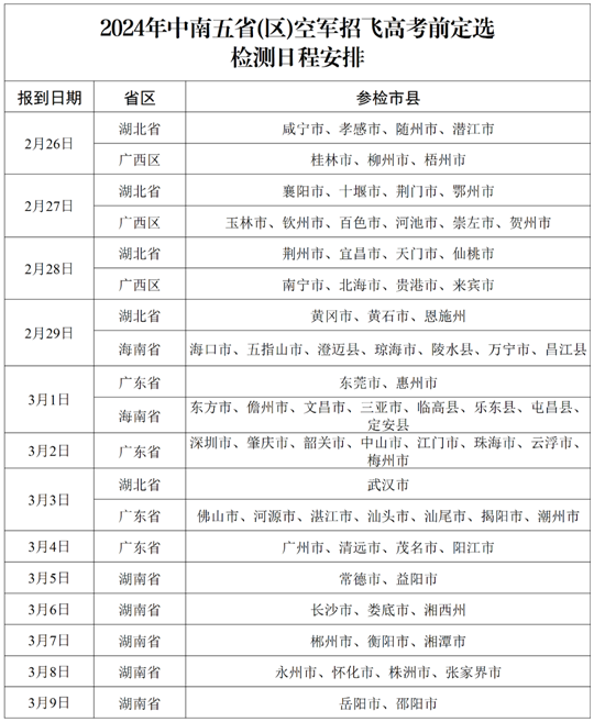 2024年中南五省(區)空軍招飛定選檢測通知 |