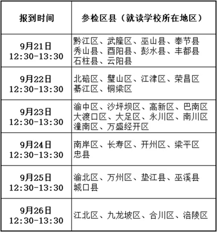 各區縣(自治縣)學生嚴格按要求于報到當日12:30至13:30報到。報到前自行就餐,無需空腹,報到后立即組織檢測。