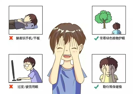 減少電子產品使用,保持正確坐姿,勤做眼保健操,保證充足的睡眠時間,每天不少于2小時的戶外活動。