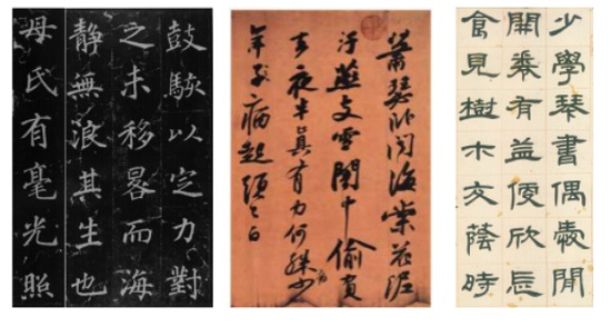 2.考試內容:對照三種不同字體范本進行臨摹(30字左右)。