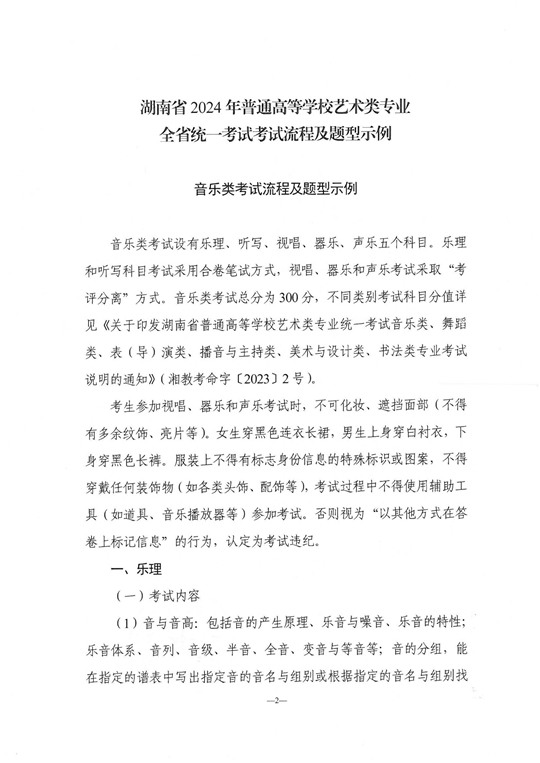關于印發湖南省2024年普通高等學校藝術類專業全省統一考試考試流程及題型示例的通知 |
