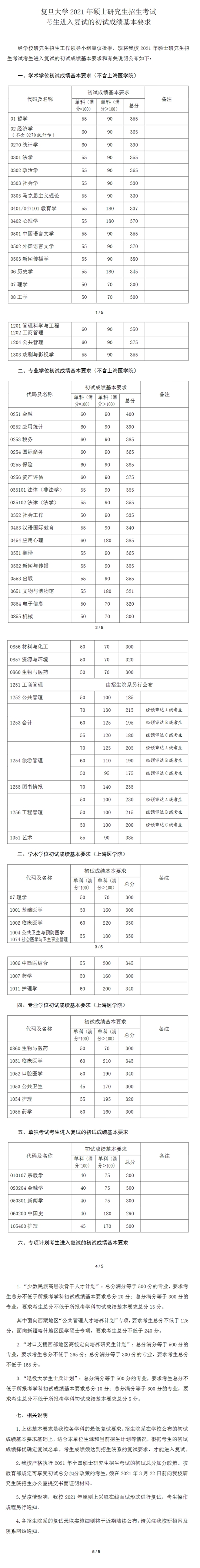 復旦大學2021年碩士研究生招生考試考生進入復試的初試成績基本要求