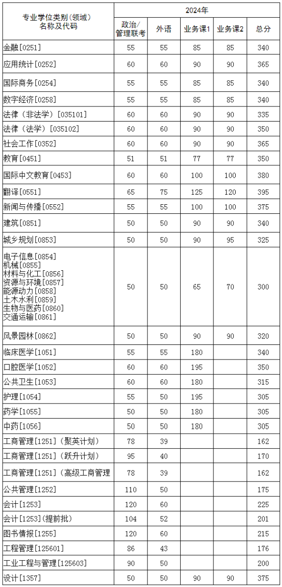 華中科技大學(xué)2024年碩士研究生招生考試復(fù)試基本分?jǐn)?shù)要求 |