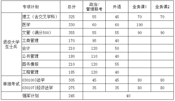 除專項(xiàng)計(jì)劃外,未達(dá)到以上復(fù)試基本分?jǐn)?shù)要求的考生不具備我校復(fù)試(含調(diào)劑復(fù)試)資格。