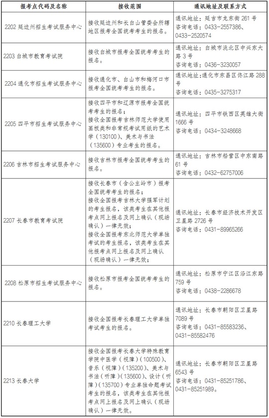 吉林省2026年報考點設置情況如下。
