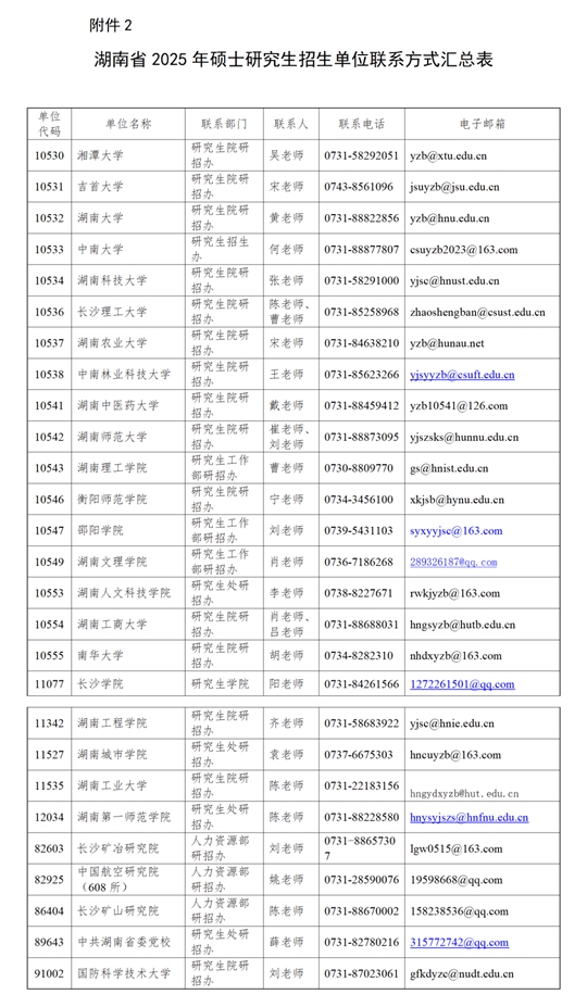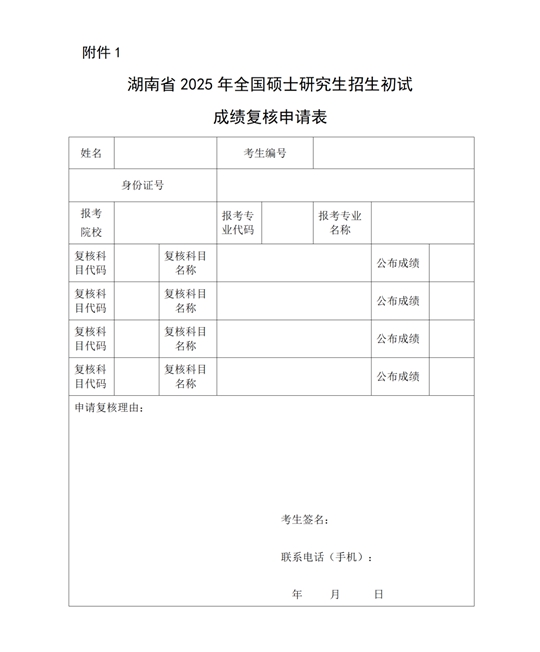 2.申請方式:考生如實填寫《湖南省2025年碩士研究生招生初試成績復(fù)核申請表》(見附件1),簽字確認(rèn)后拍照,與本人身份證照片一并作為附件,通過電子郵件的方式發(fā)送到有關(guān)招生單位(見附件2)。成績復(fù)核結(jié)果可在3月7日后向報考的招生單位查詢。