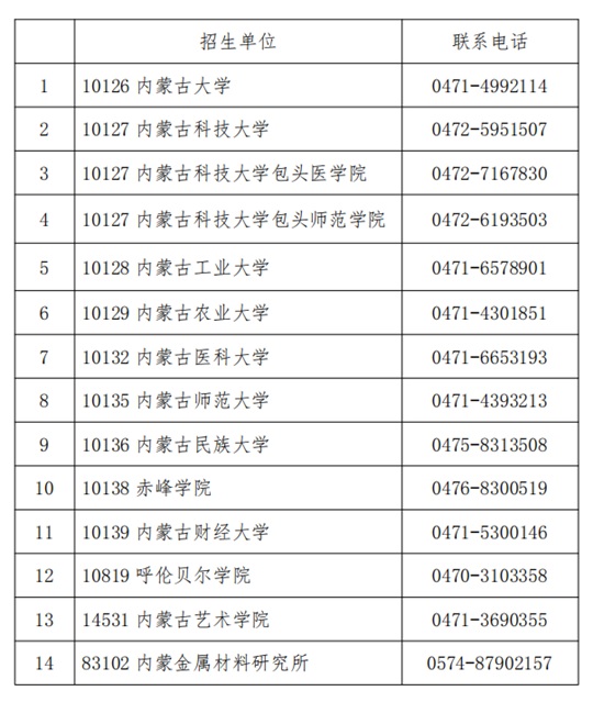 內(nèi)蒙古自治區(qū)碩士研究生招生單位聯(lián)系方式