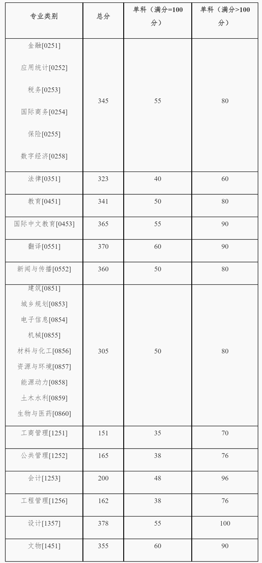 湖南大學2025年碩士研究生招生復試基本分數線 |